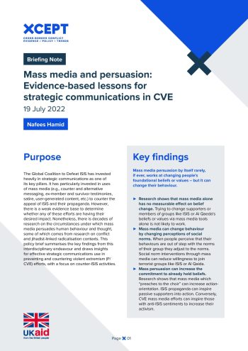 Mass Media and Persuasion: Evidence-Based Lessons for Strategic Communications in CVE